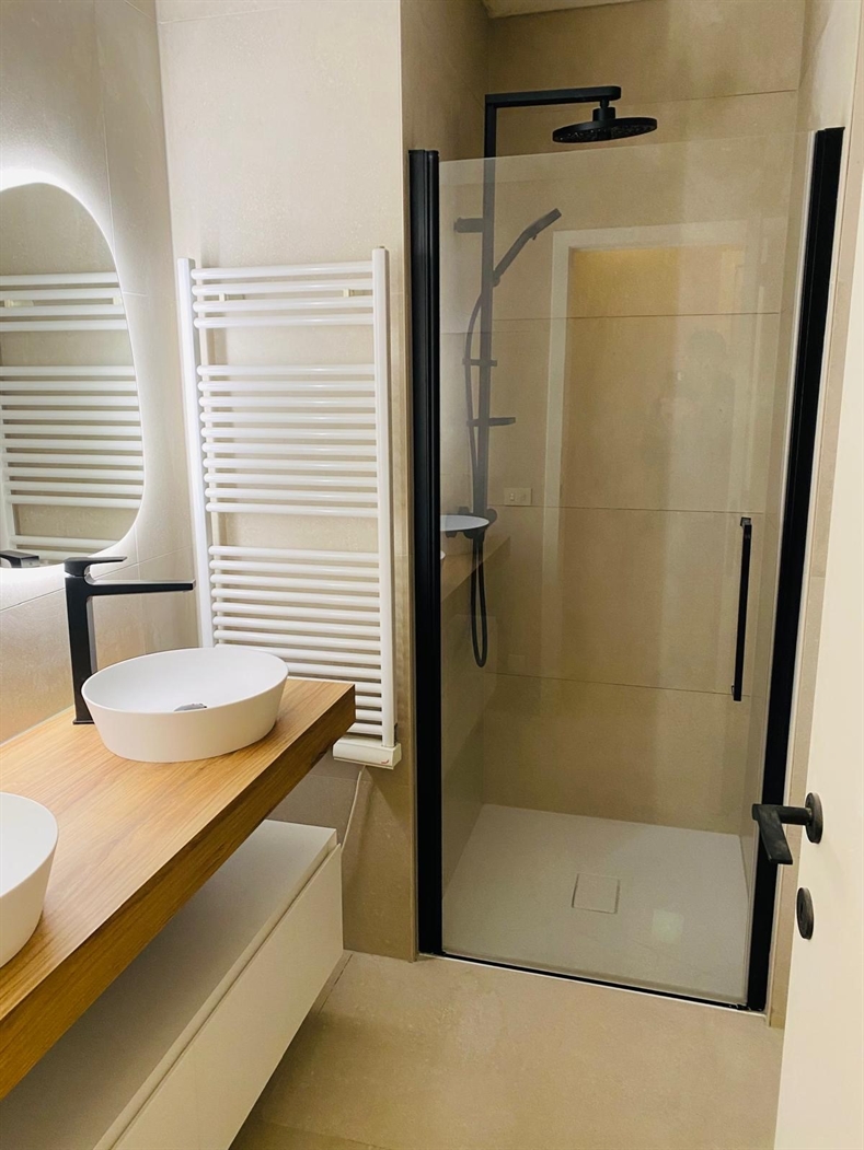 Neues Appartement auf 50M vom Seedeich - 4° Stock mit seitliches Meerblick - bestehend aus; geräumiges Wohnzimmer mit kleine Terrasse vorne - offene, eingerichtete Küche mit Spühlmaschine - Badezimmer mit Badewanne und Dusche - separate Toilette - Schlafzimmer mit Doppelbett + fernseher - Schlafzimmer mit Etagenbetten - Balkon hinten. (No smoking - Keine Tiere).