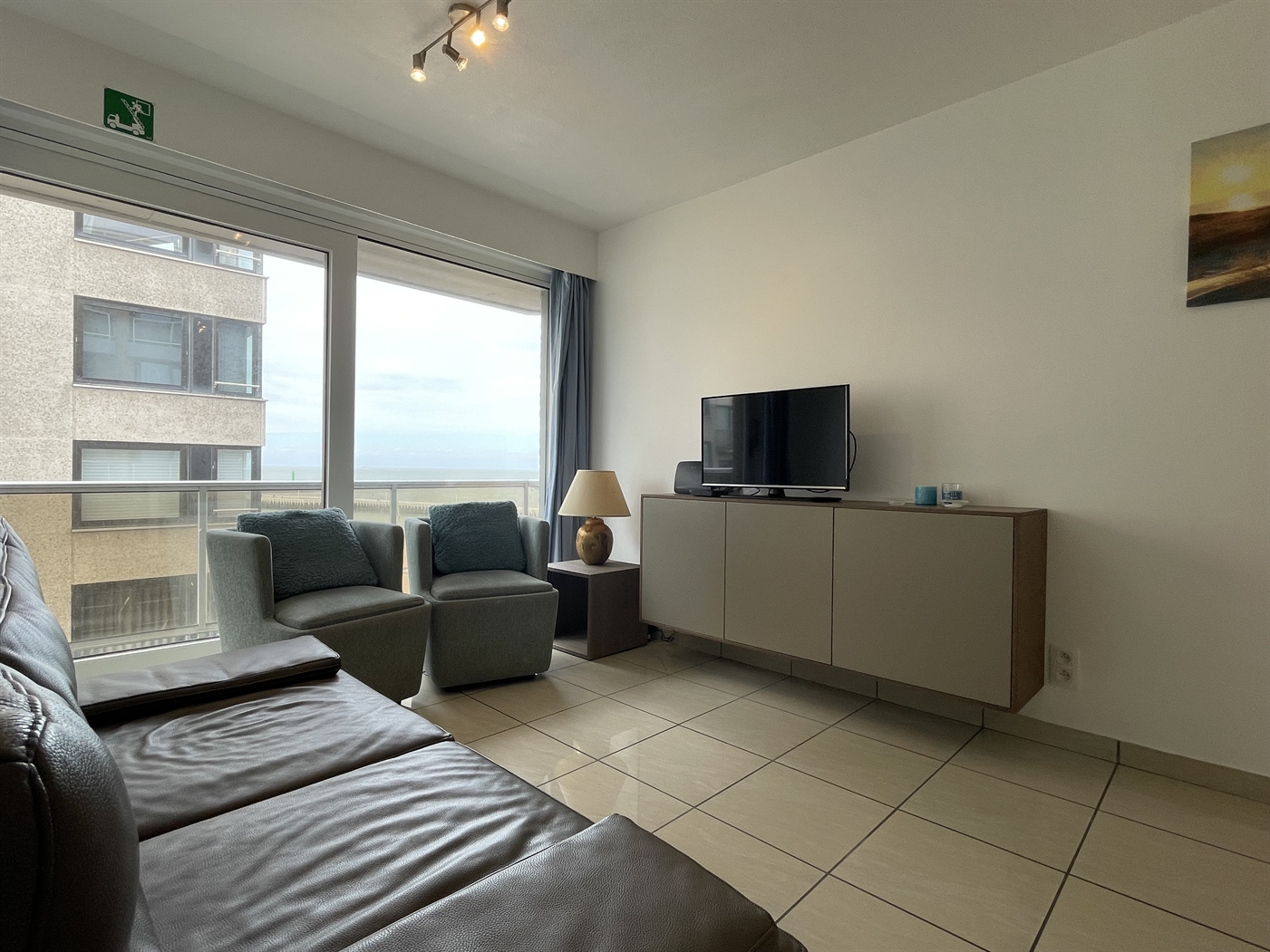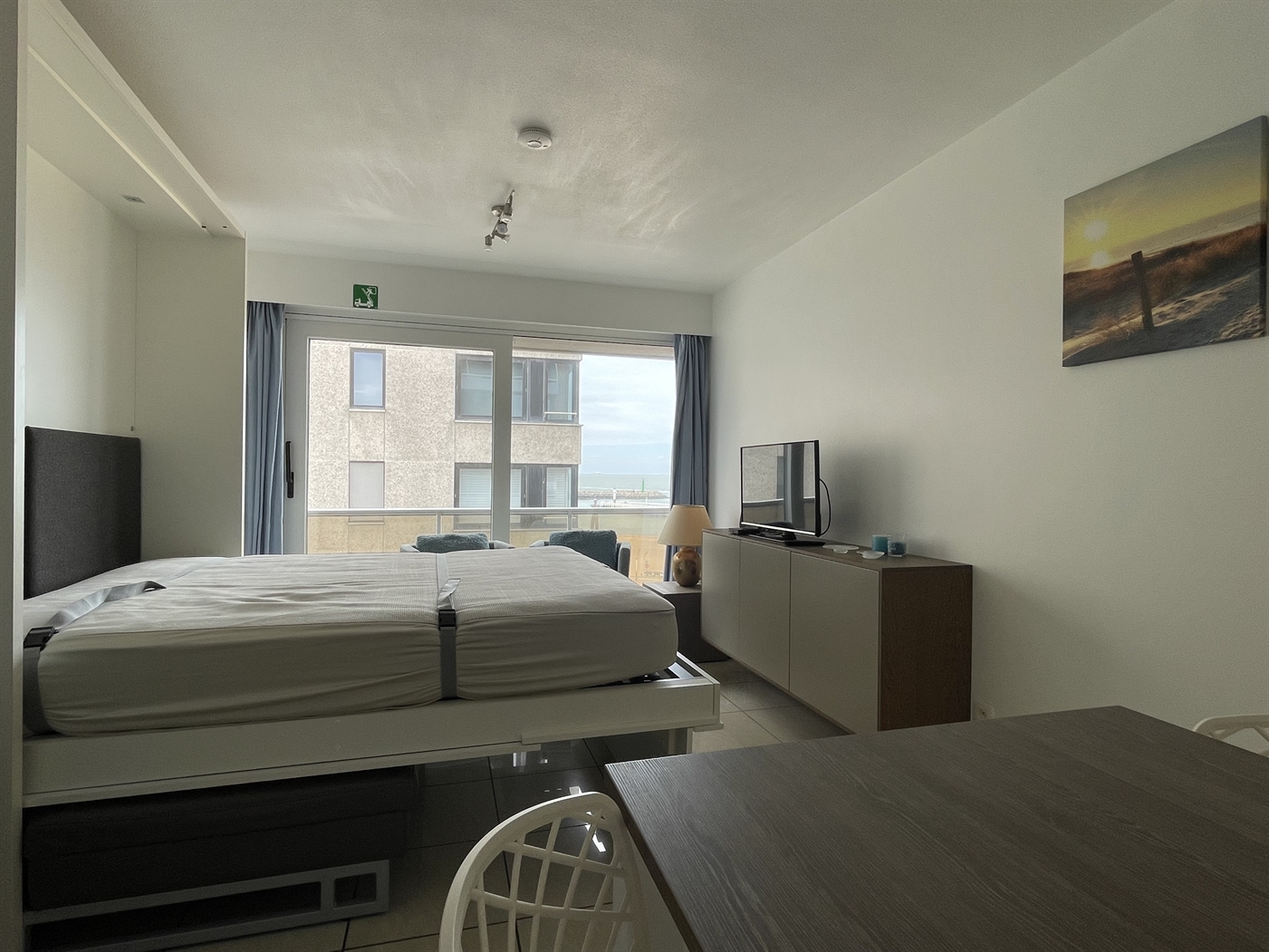 Bel appartement sur le front de mer - 7ème étage avec une belle vue sur la mer et la jetée - composé de : salon lumineux avec une belle vue - cuisine ouverte moderne - toilettes séparées - salle de bain avec douche et lavabo - 1 chambre à coucher avec 2 lits simples. Lit pliant pour 2 personnes dans le coin salon.