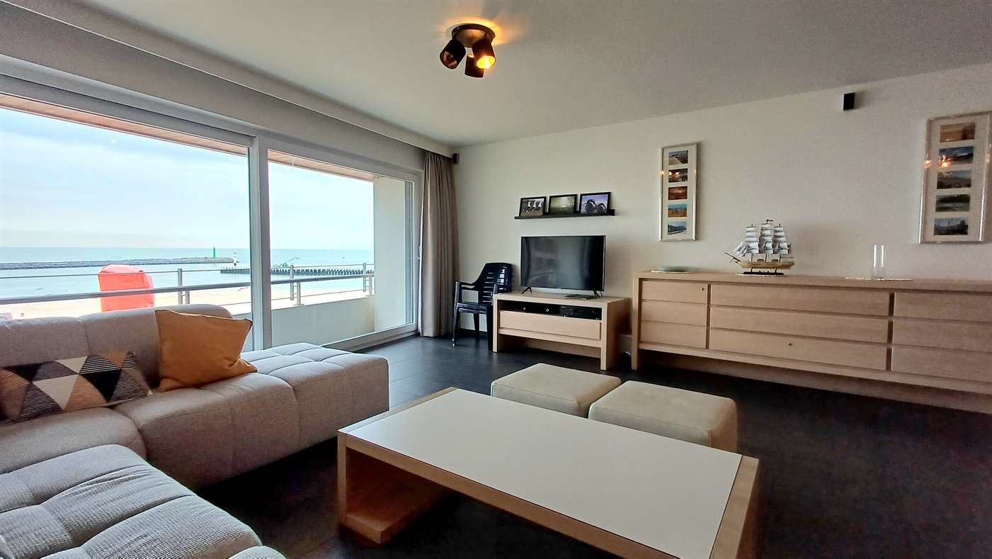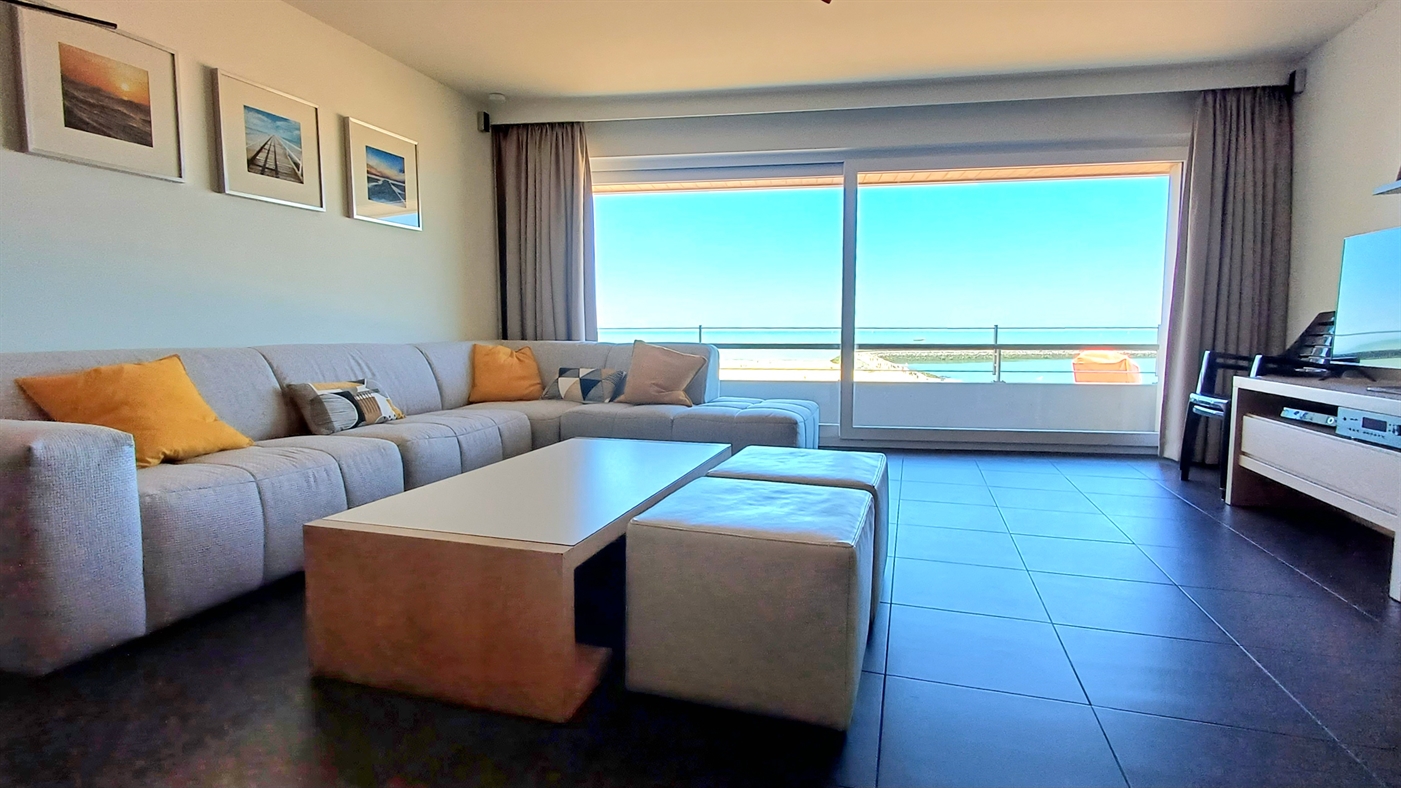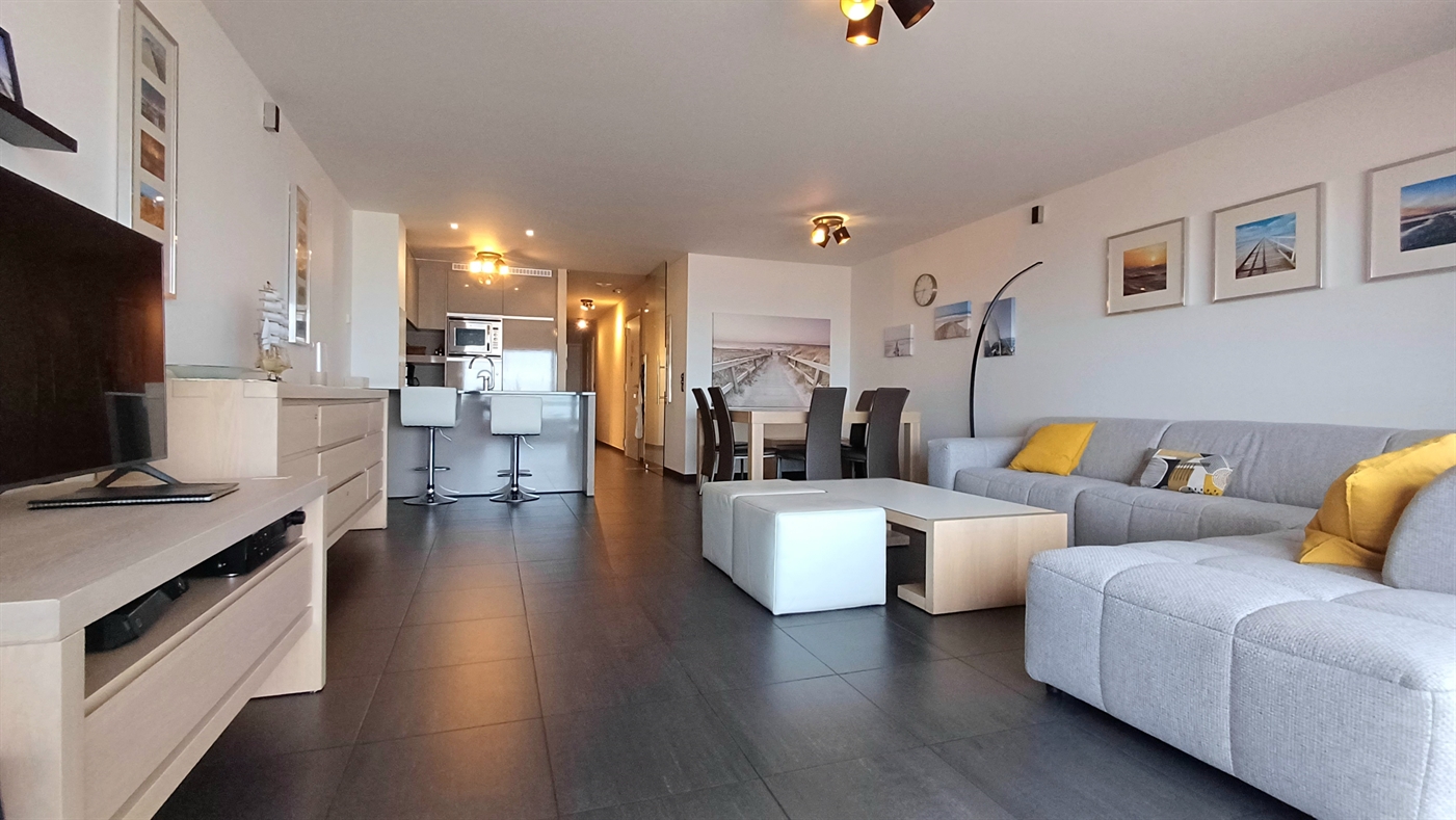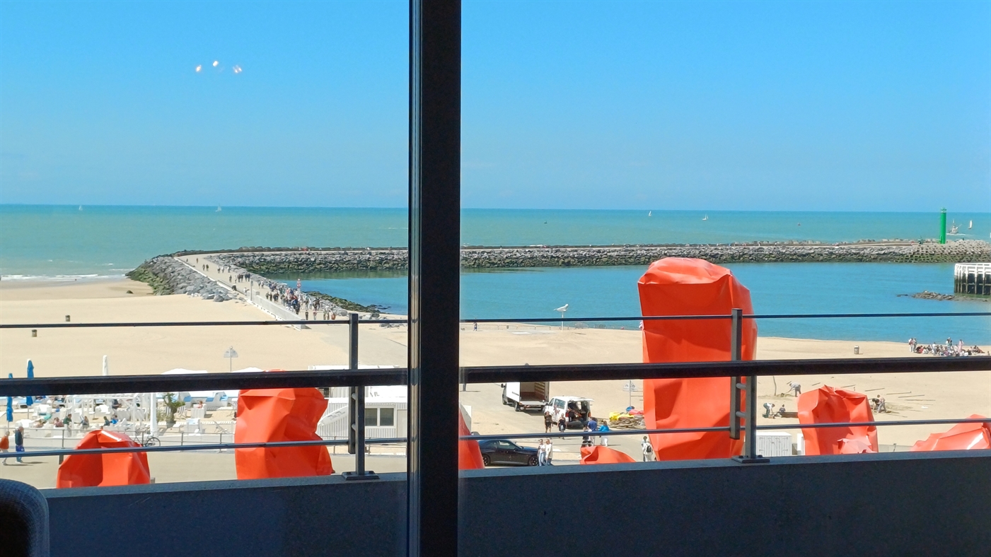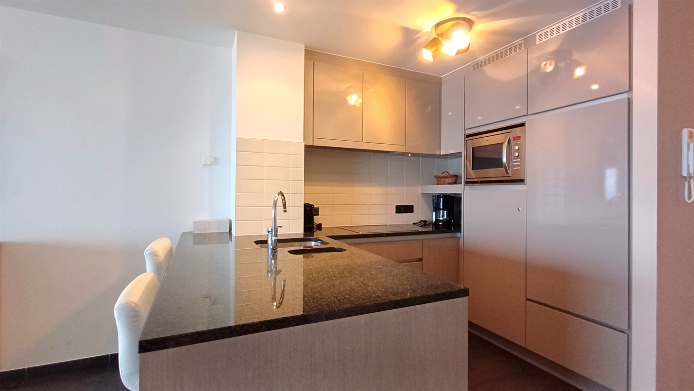 Appartement de luxe avec finition de haute qualité dans la prestigieuse résidence Commodore, situé sur la digue, au 4ième étage - consistant en; living très spacieux avec grande terrasse et vue pano- ramique sur la mer - cuisine ouverte, équipée avec lave-vaisselle - salle de bain avec baignoire et toilette - salle de bain avec douche - toilette séparée - chambre à coucher avec un lit double - chambre à coucher avec lits superposés + un lit de 1 pers.- téléplasma + internet.