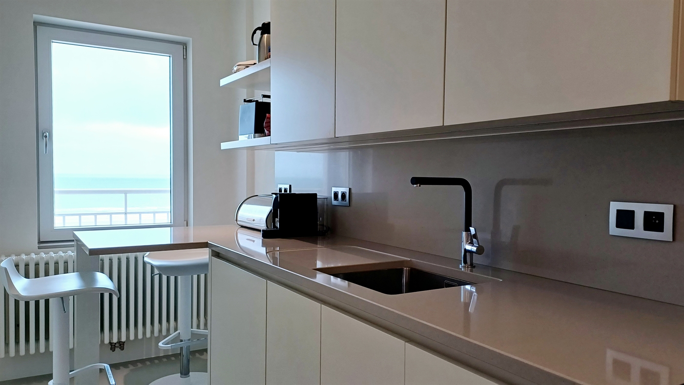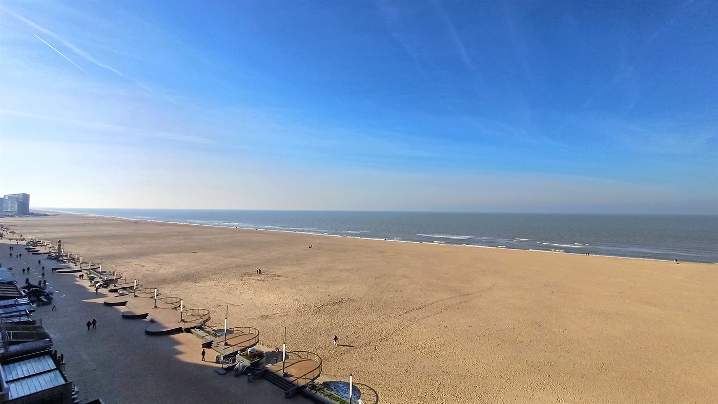 Appartement très spacieux dans la résidence Het Kursaal, dans un emplacement de choix, situé sur le front de mer et à proximité du casino. Appartement avec des finitions de haute qualité au 7ème étage, comprenant : un salon spacieux avec une belle vue panoramique sur la mer et une terrasse avant, une cuisine entièrement équipée avec tout le confort, une salle de bain 1 avec douche à l'italienne, double lavabo et toilette. Salle de bains 2 avec douche et lavabo. Toilette séparée et vestiaire dans le hall d'entrée. Deux chambres à coucher avec lit double. Abri pour vélos.