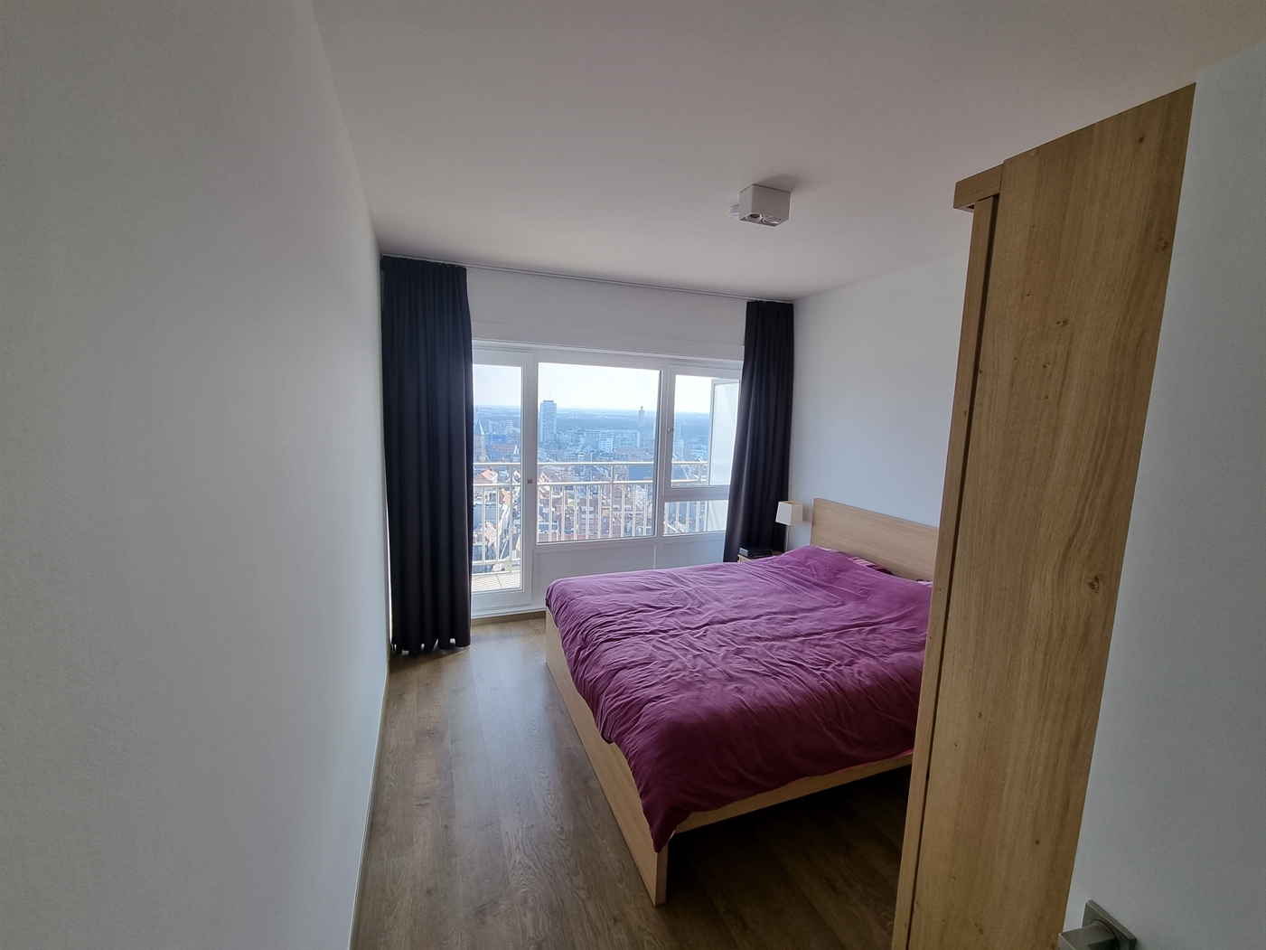 Appartement très spacieux - 23ième étage - vue panoramique sur la mer et sur la ville d'Ostende - consistant en; living avec un lit-divan de 2pers.- cuisine séparée avec lave-vaisselle - salle de bain avec baignoire et toilette - toilette séparée - chambre à coucher avec un lit de 2 pers. - chambre à coucher avec 2 lits jumeaux - chambre à coucher avec un lit de 1 pers.- Flatscreen. (Non-fumeurs - animaux pas admis).