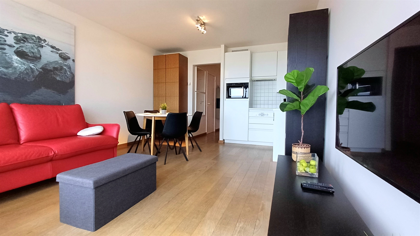 Bel studio spacieux, situé sur la digue 7ième étage avec une superbe vue sur l'estacade - consistant en; living meublé moderne avec lits-divan de 2 pers. - cuisine ouverte, équipée avec lave-vaisselle salle de bain avec douche et toilette - chambre à coucher ave 1 lits (réversible) de 2 pers.