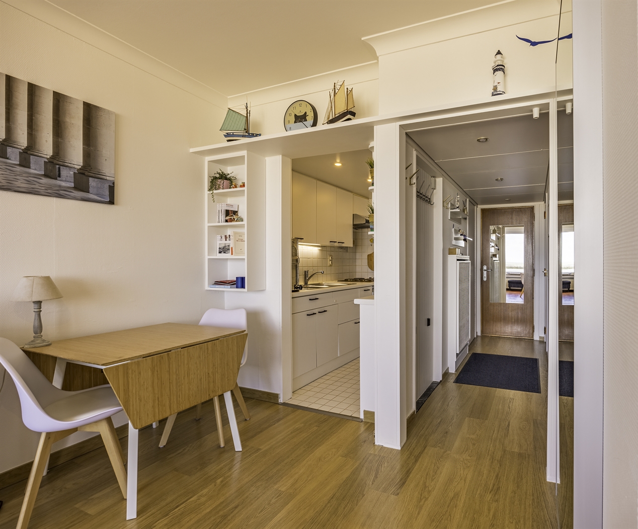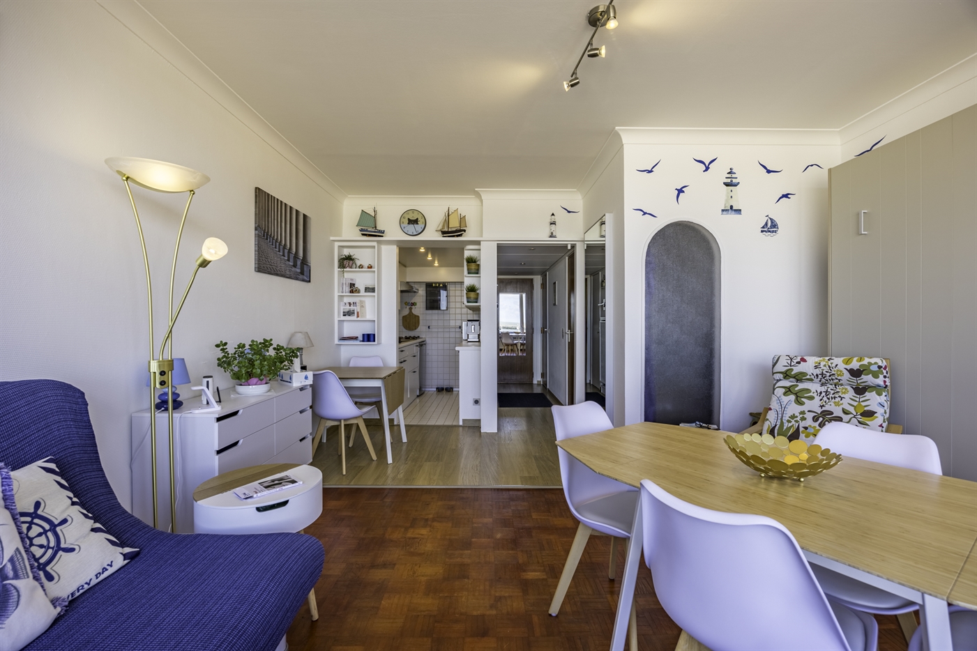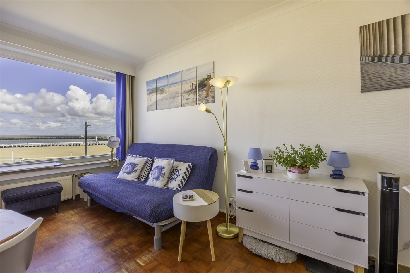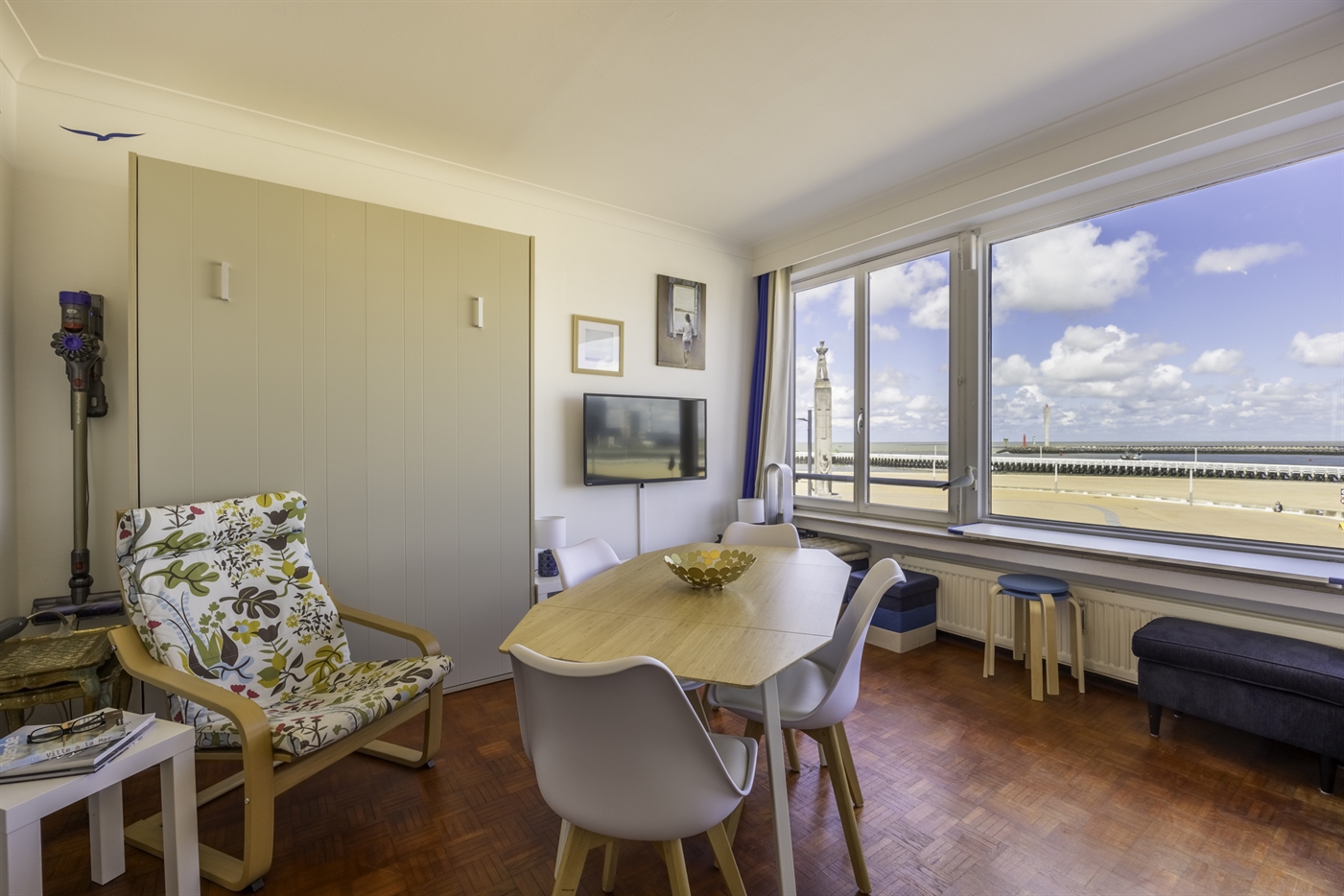Spacieux studio situé sur la digue, au 2e étage, offrant une vue magnifique sur la mer, la petite plage et le port. Il comprend : un salon spacieux et confortable avec un lit pliant pour 2 personnes et un canapé-lit pour 2 personnes (tous deux de 1,40 m) ; une cuisine équipée ; une salle de bains avec douche et lavabo ; des toilettes séparées.Les petits animaux de compagnie sont admis.