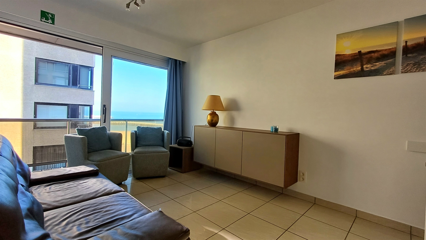 Mooi appartement op de zeedijk - 7de verdieping met prachtig uitzicht op de zee en het staketsel - bestaande uit; lichtrijke woonkamer met prachtig zicht - moderne open keuken - apart toilet - badkamer met douche en lavabo- 1 slaapkamer met 2x een enkel bed. Opklapbed voor 2 personen in de zithoek.