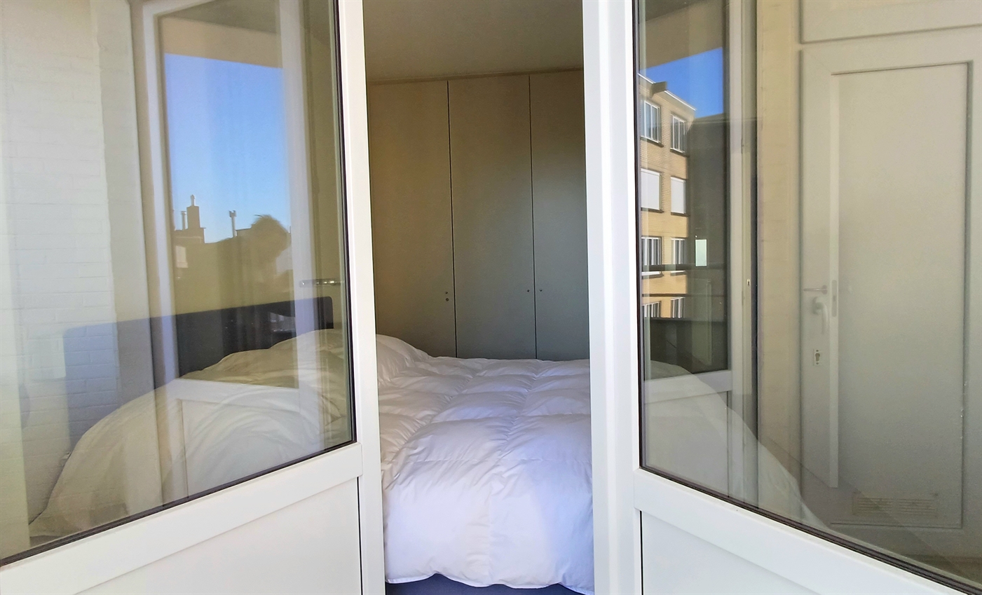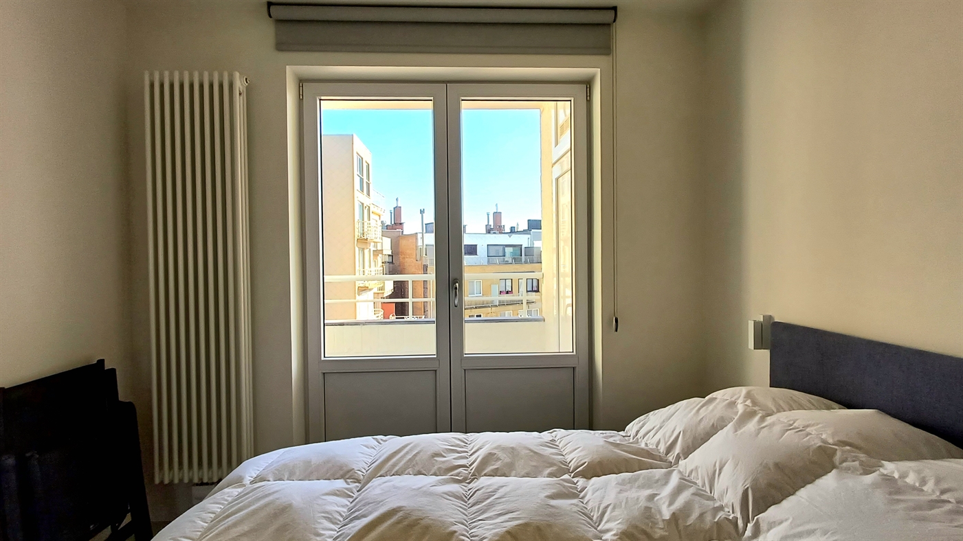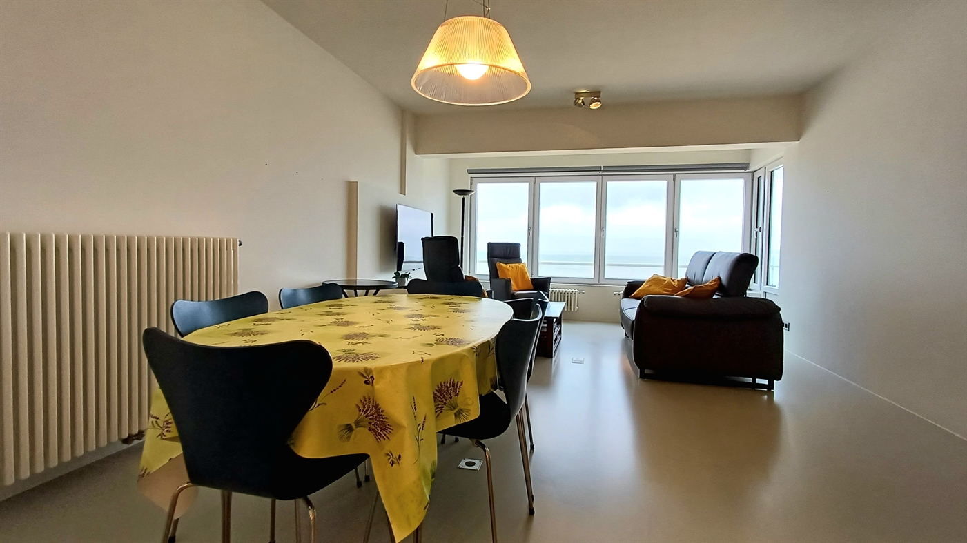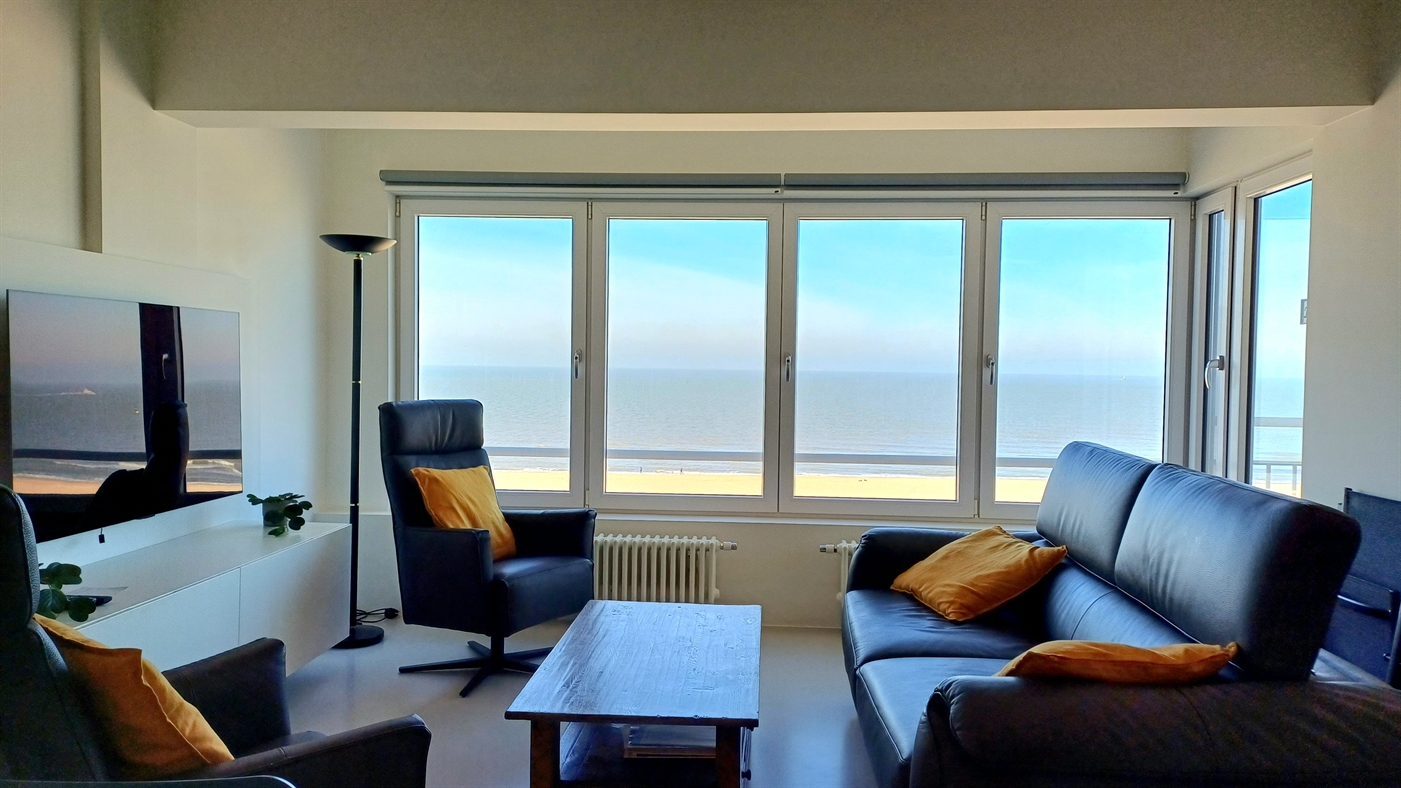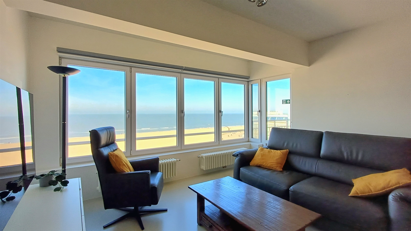 Zeer ruim appartement in residentie Het Kursaal, gelegen op een toplocatie aan de zeedijk en dichtbij het casino. Appartement met hoogstaande afwerking op een 7de verdieping, bestaande uit: ruime woonkamer met een prachtig panoramisch zeezicht en terrasje vooraan, volledig ingerichte keuken voorzien van alle comfort, 2 badkamers waarvan 1 met een inloopdouche + dubbele wastafel en toilet en badkamer 2 met douche en lavabo. Apart toilet en vestiaire in de inkomhal. Twee ruime slaapkamers met dubbel bed, waarvan één toegang geeft tot het terras achteraan. Er is ook een fietsenstalling aanwezig in de residentie waar u 2 fietsen kan plaatsen.Dit pareltje heeft de ideale ligging voor een zorgeloze vakantie gelegen aan het strand op slechts enkele stappen van het station en centrum.