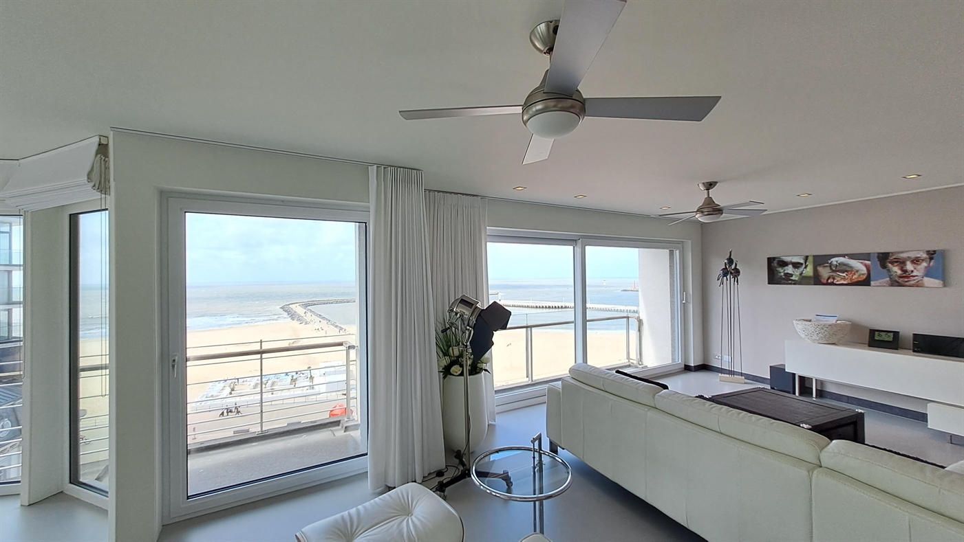 Prachtig, mooi gemeubeld luxe-appartement in de prestigieuze residentie Commodore gelegen aan de Albert I Promenade, 8ste verdiep met uniek uitzicht op de zee en het staketsel. Bestaande uit; ruime woonkamer met terras vooraan - open, moderne keuken met vaatwas - afzonderlijk toilet - slaapkamer met bed voor 2 pers.- badkamer met ligbad, dubbele wastafel en toilet - slaapkamer met bed voor 1 p. slaapkamer met bed voor 2 pers.- badkamer met douche en wastafel - zonneterras rondom. LCD TV.