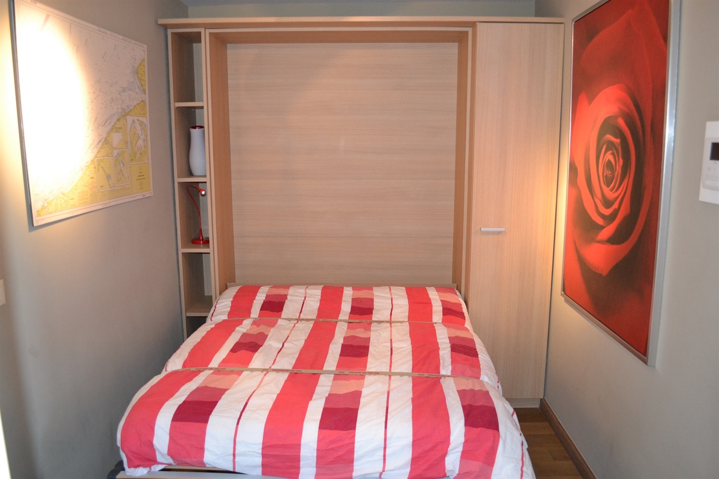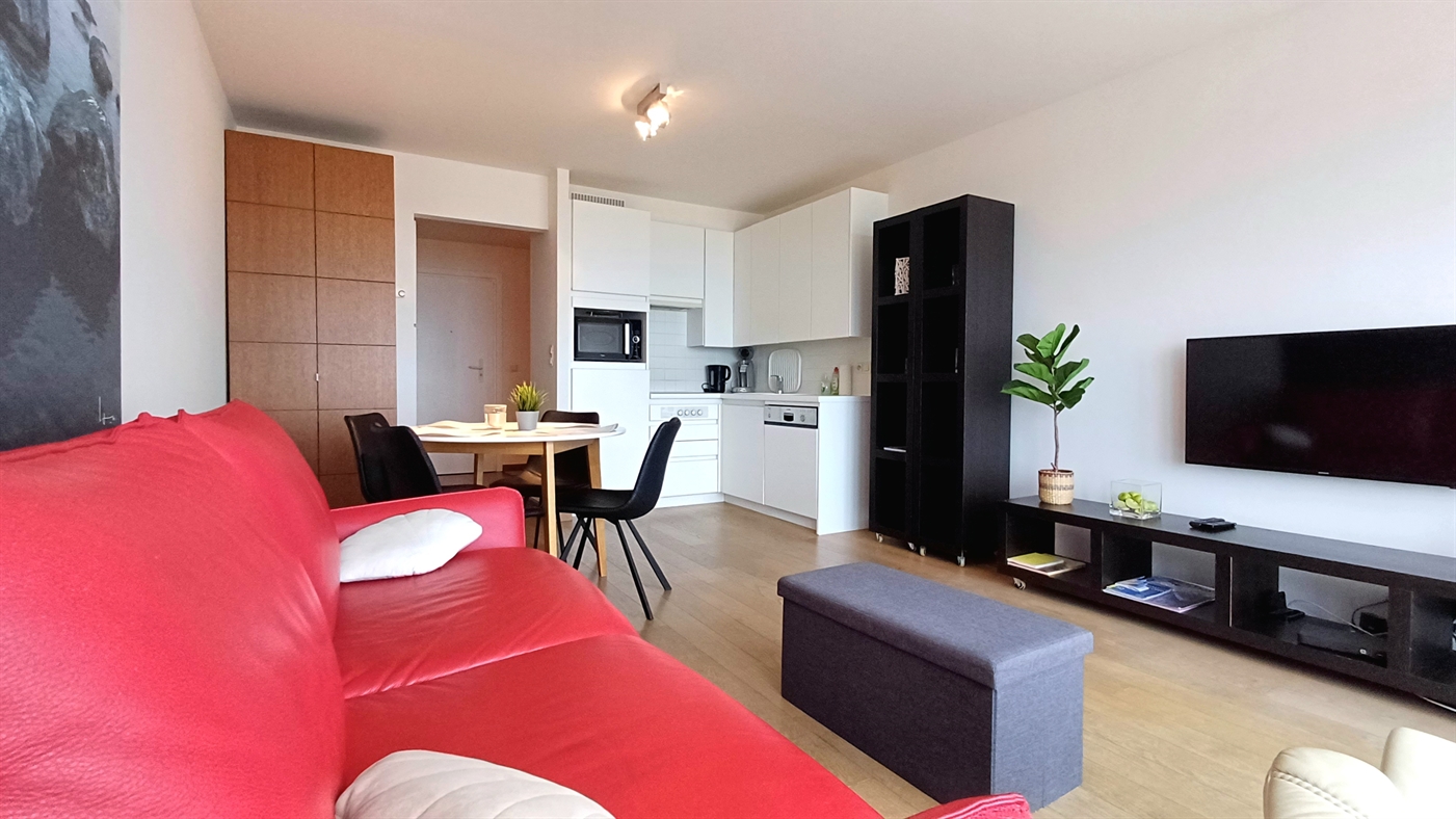 Mooie en ruime studio gelegen op de Albert I Promenade - 7de verdieping met een prachtig uitzicht op de havengeul - bestaande uit modern gemeubelde woonkamer met divanbed voor 2 pers. - open keukenmet vaatwas - badkamer met douche en toilet - afzonderlijke slaapkamer met dubbel (uitklap)bed.